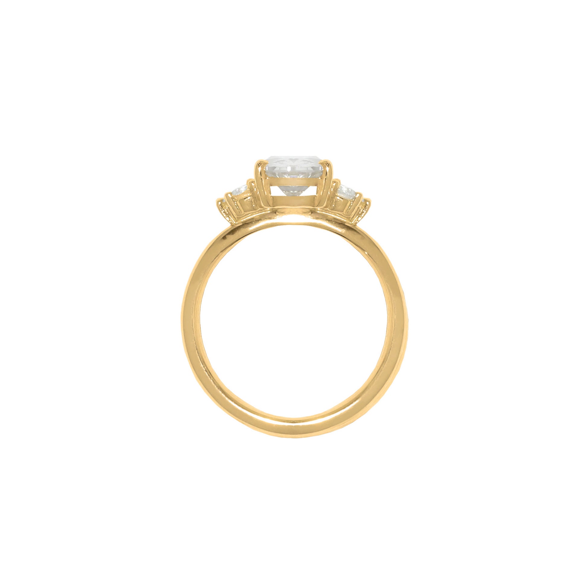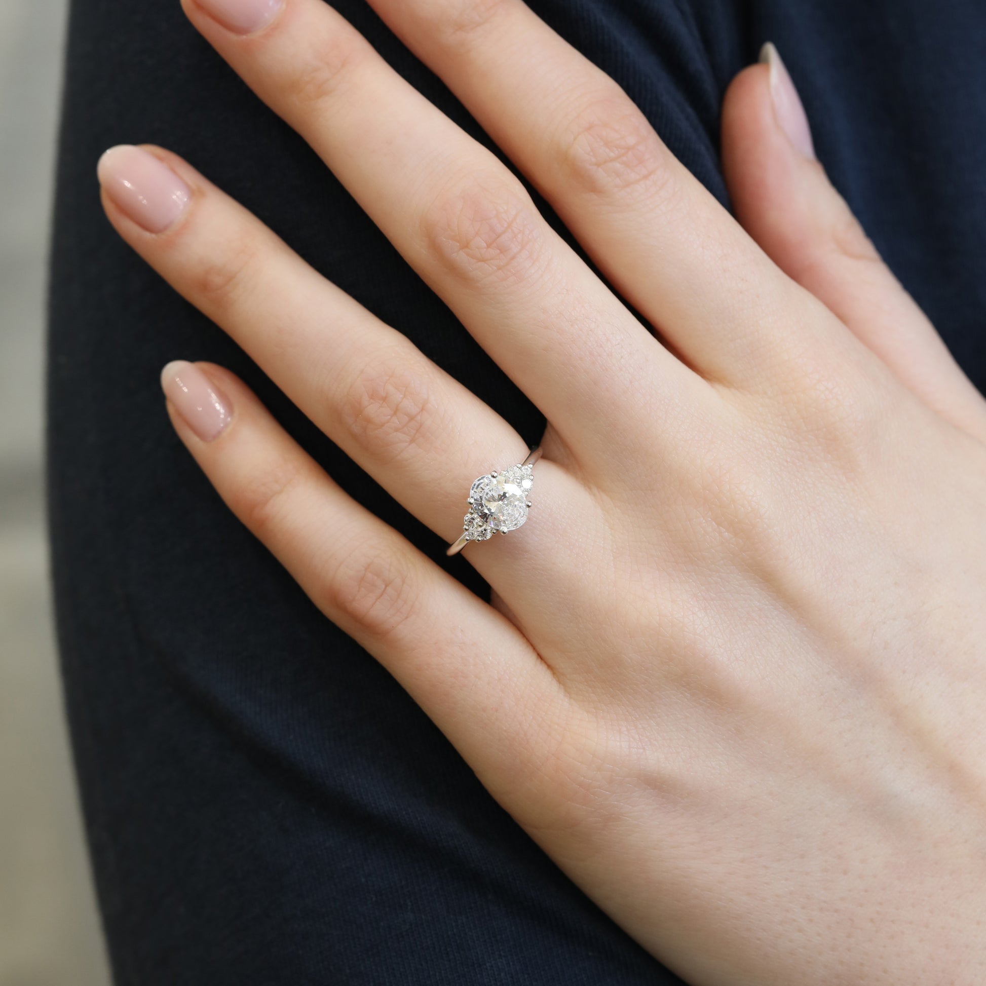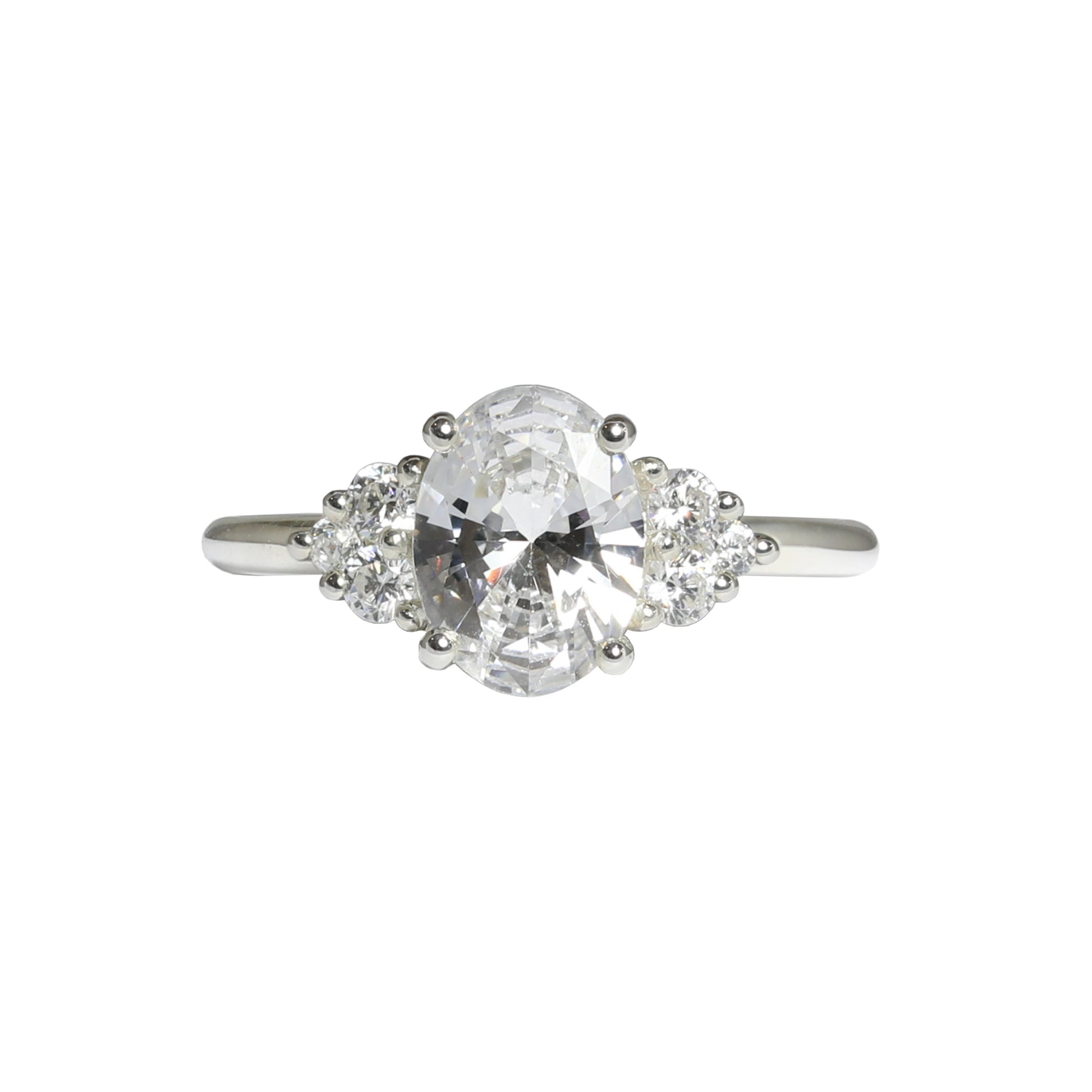 This Antique inspired ring features an oval cut diamond accented by smaller white diamond side stones. Celebrate your love with a beautiful ring, destined to become a cherished heirloom for generations to come.